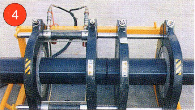4. 加熱完畢,取出加熱板,迅速接合兩加熱面,升壓至熔接壓力并保壓冷卻。