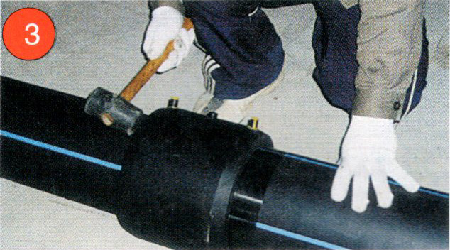 3. 將電熔管件套在管材上,把管校直保證在同一軸線上。